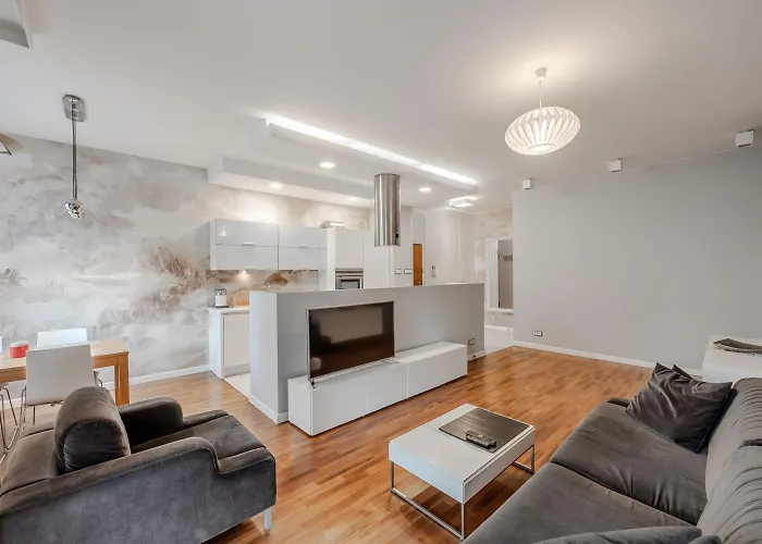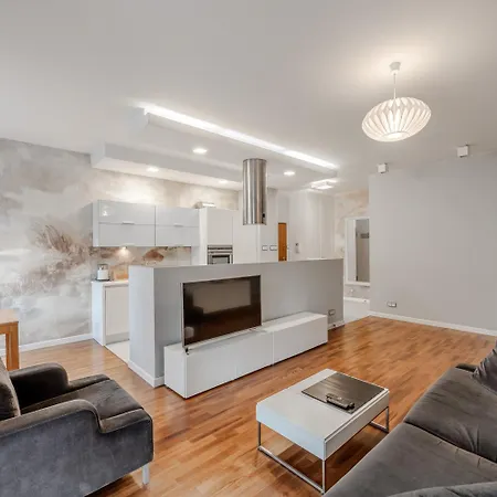 The spacious 92 m² Apartament Klimczaka 22 Warsaw is located within 10 km of Warszawa Główna train station and within 5 minutes' walk of the Temple of Divine Providence. The apartment offers a view of the city, and there is a terrace.